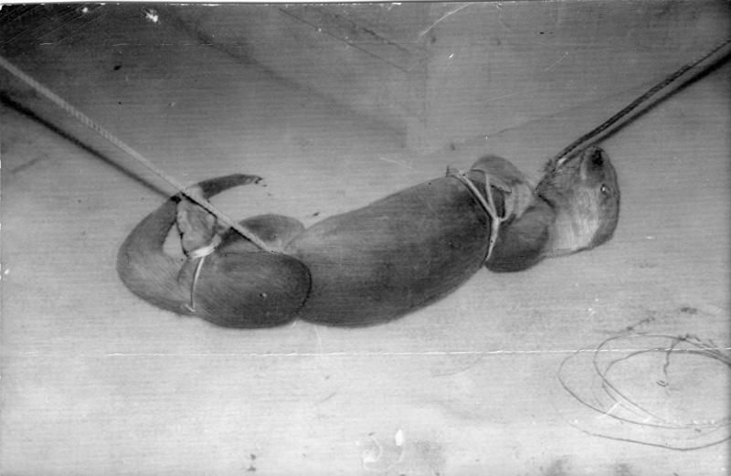 土佐清水市の人家に侵入して“お縄”になったカワウソ。この年、国の特別天然記念物に指定された(昭和40年12月)