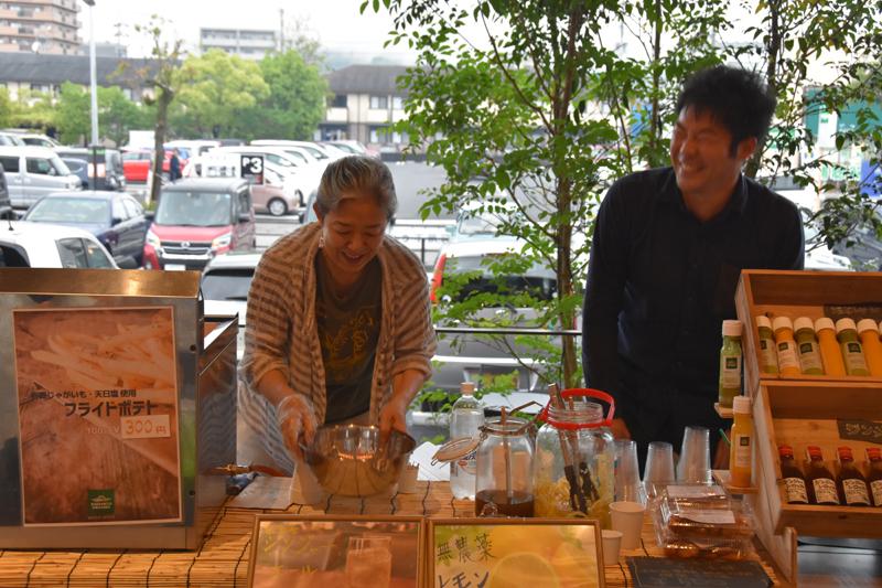 四万十市から出店の「四万十オーガニック」では、有機農産物を使ったドリンクなどを販売。添加物不使用のドレッシングなど持ち帰り品にも注目です。