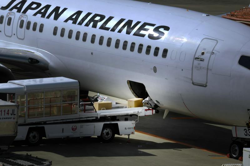 段ボールに入ったシラスウナギが飛行機に積み込まれる(徳島空港)