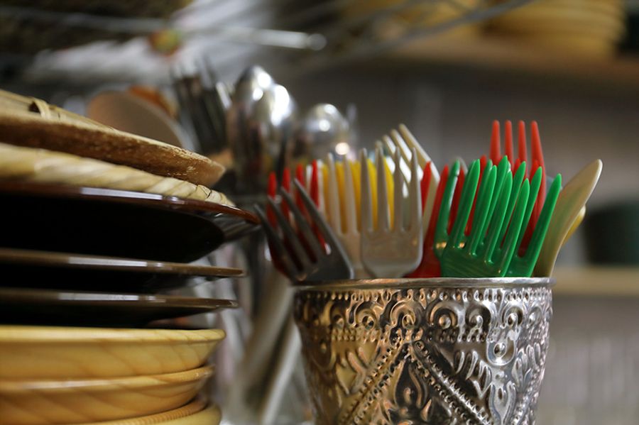 洋音さんが料理で大切にしているのは、「県内農家さんの野菜をたっぷり使うこと」。派手な物好きという洋音さんだけに、盛り付けはカラフル。その隠し味に、自作の加工品やハーブ類を使っています。ランチに添えられたホットソースはかけ放題です。