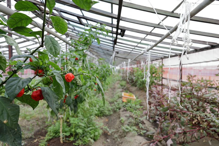 夏は日中40度を超えるハウス内。4月に苗を植えて6月から青い唐辛子が、7月からは熟し、鮮やかに色づいた唐辛子が収穫できるように