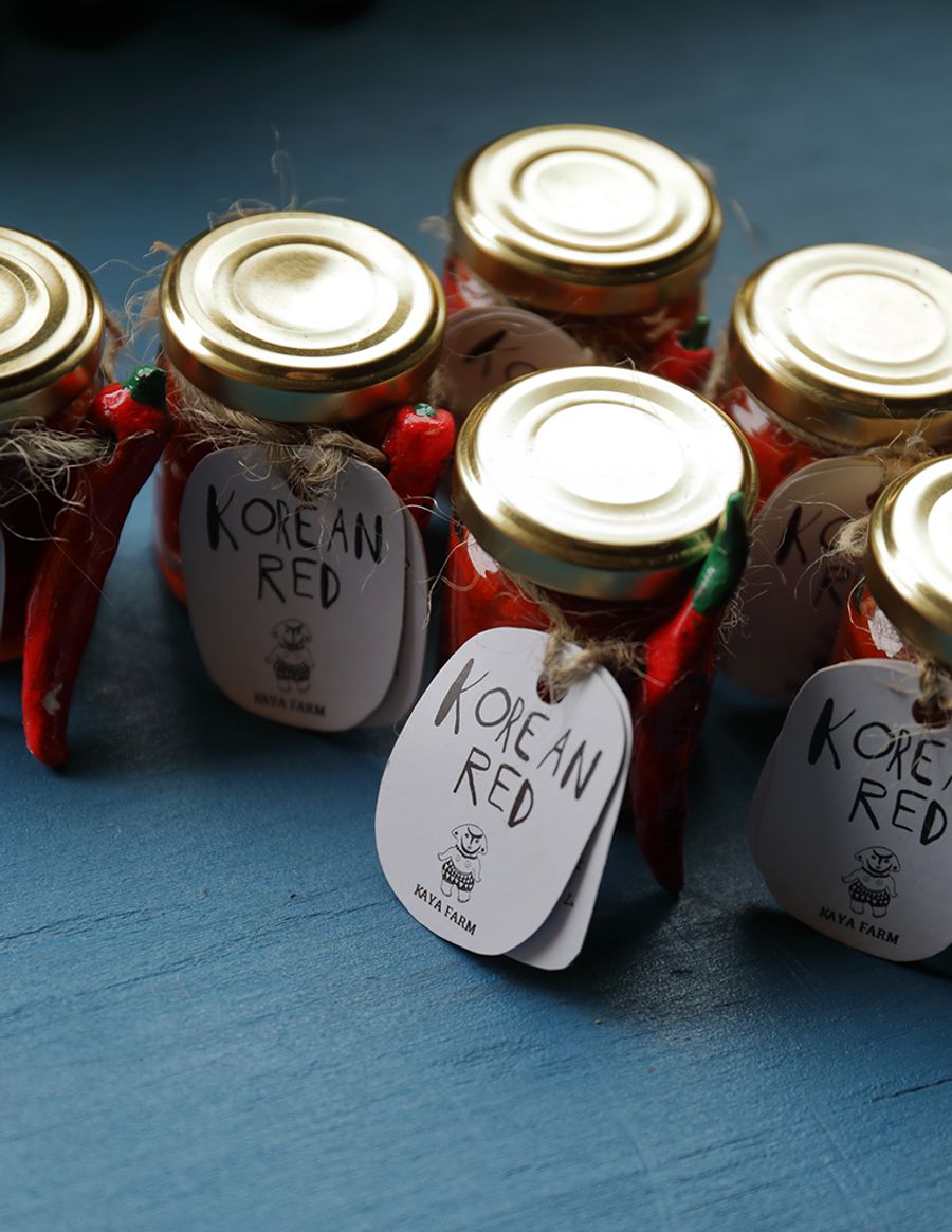 日曜市で偶然見かけた生のハバネロを食べてその味に惚(ほ)れ、唐辛子農家となった楠永泰之さんと妻・洋音(ひろね)さん。2018(平成30)年、KAYA FARMを立ち上げ、高知市仁井田で唐辛子を育て始め、翌年には日曜市に出店。ホットソースや塩漬け、一味などの加工品を手作りするほか、20(令和2)年には実店舗「カヤ商店」を同市竹島町にオープンします。