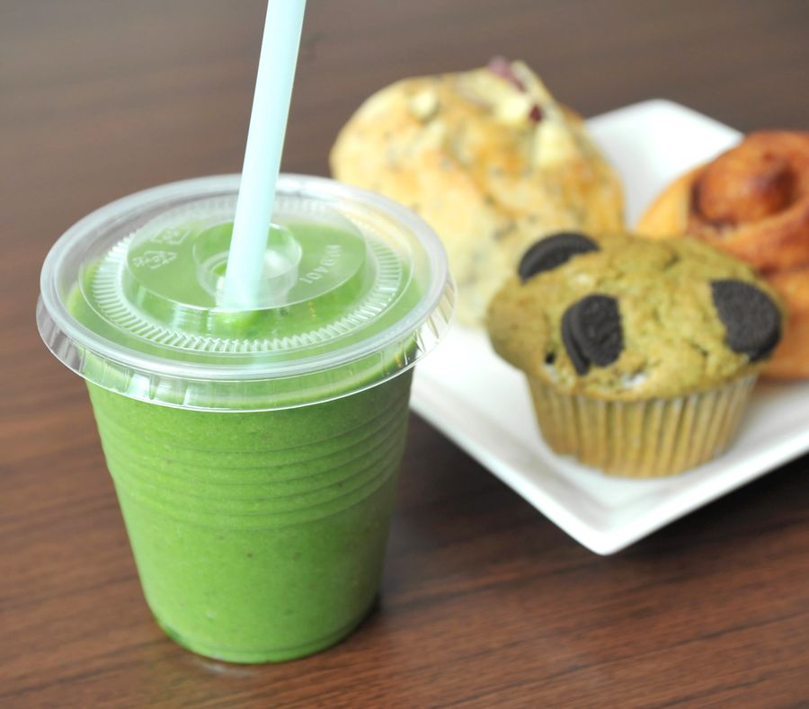 スムージーは13種類。1番人気は、グリーンスムージー(税込み520円)。…