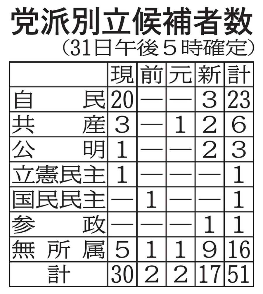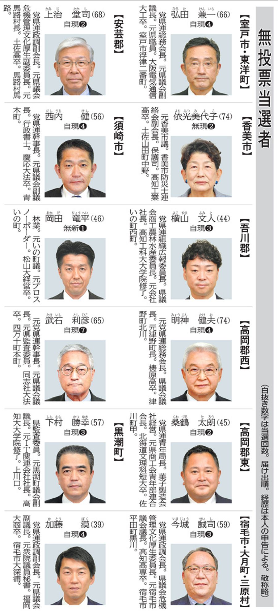 高知県議選、最多12人無投票 8選挙区39人の戦い