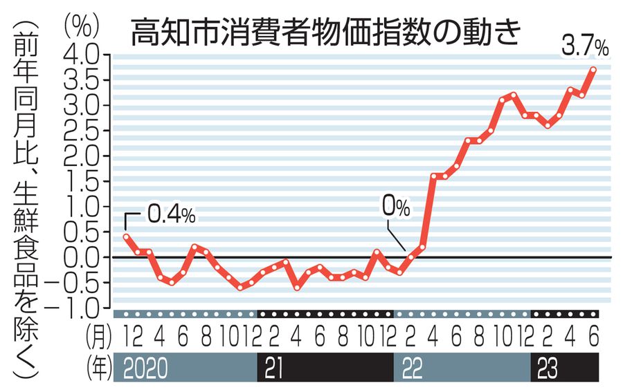 高知市6月物価3.7%上昇 電気値上げ影響 41年間で最高