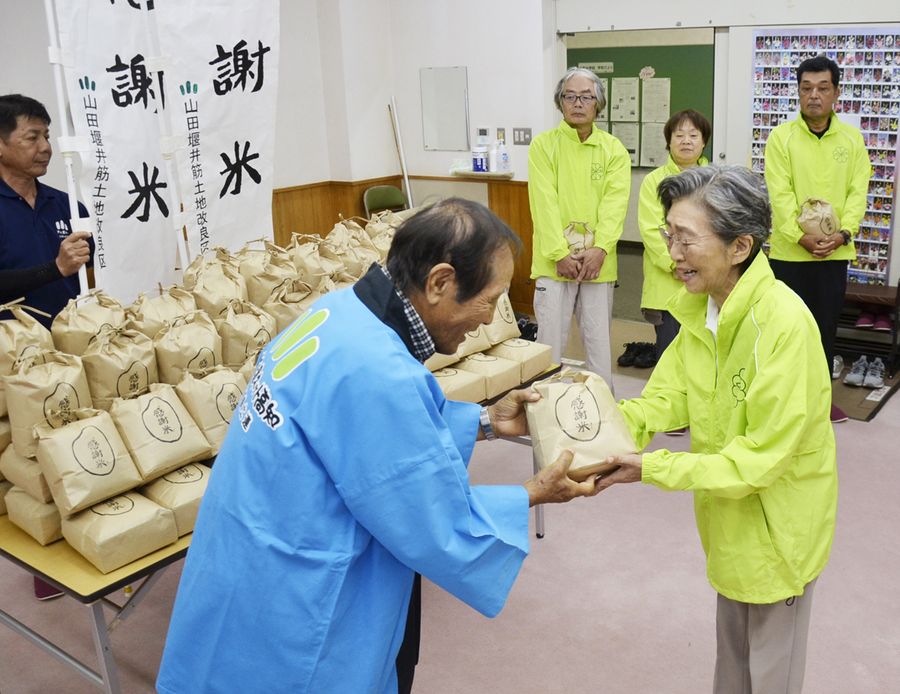 物部川保全に感謝 上流域住民に新米 高知県香美市の土地改良区