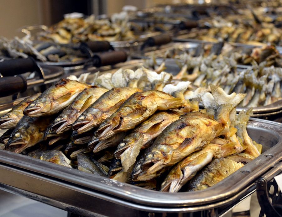 驚いたのはその舞台裏。ずらっと並んだ2200匹の塩焼きは、泳ぐような姿の「踊り串」で焼かれている。以前から、「厨房(ちゅうぼう)はてんやわんや」「あんな大変なこと、他はどこもできない」なんて声を聞いていた。この日も開会は午後7時だが、午前3時から焼き始めたとか。