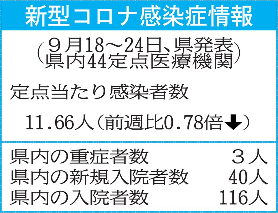 高知県内コロナ減少、前週比0.78倍 9/18~24
