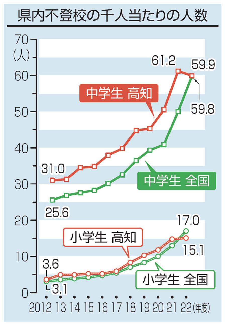 小中学校の不登校が高水準 1000人当たり30.7人 いじめ「重大事態」は全国最悪 2022年度高知県内