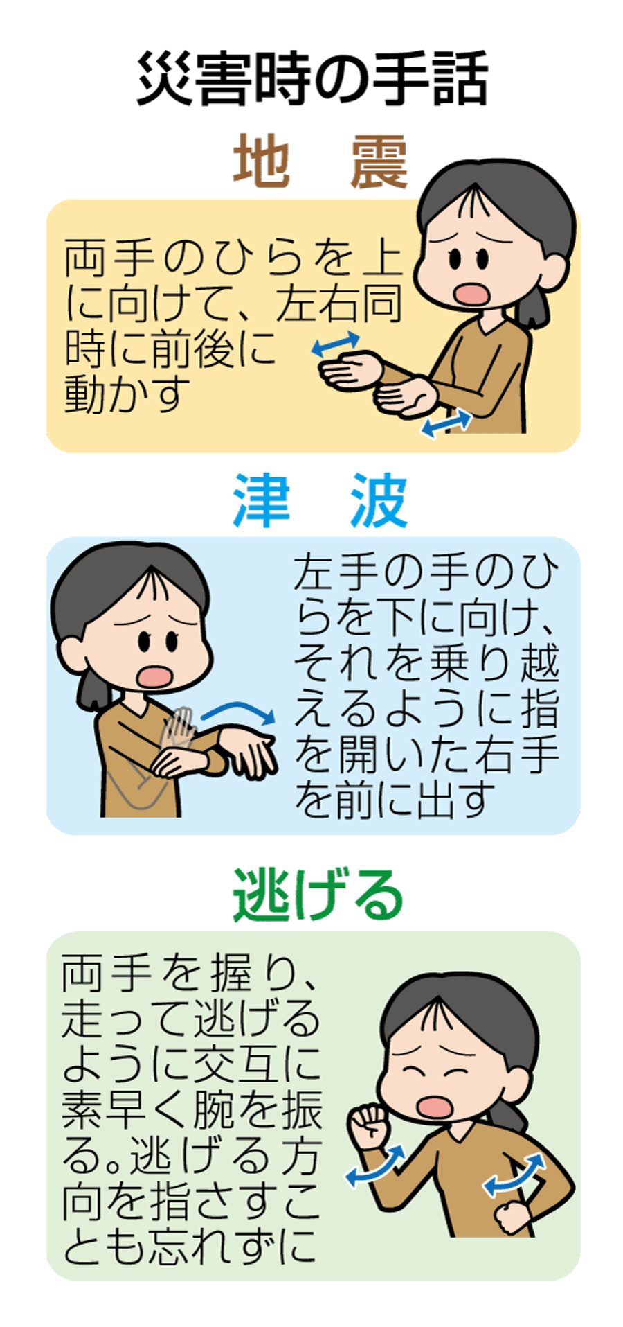 聴覚障害者は、避難のサイレンが聞こえず逃げ遅れたり、避難所で孤立したりする可能性があり、障害者団体などは目に見える形での情報発信を求めている。