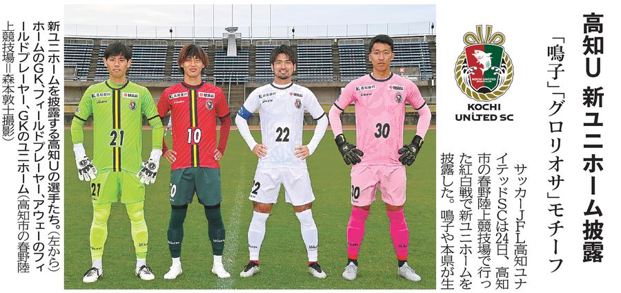 高知Uは2024年2月24日、高知市の春野陸上競技場で行った紅白戦で新ユニホームを披露。鳴子や本県が生産量日本一のグロリオサがモチーフ。フィールドプレーヤーのホーム用は赤、アウェーは白、GKはそれぞれ緑、ピンクが基調。ホーム用には鳴子の拍子木をイメージした直線をあしらい、「たくさん応援してもらえるように」との思いを表現した。アウェー用のグロリオサには、Jリーグ昇格という願いを込めた。