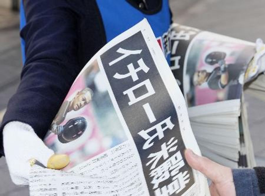 イチローさんが米国野球殿堂入りメンバーに選ばれ、配られた号外=22日午前、東京・新橋