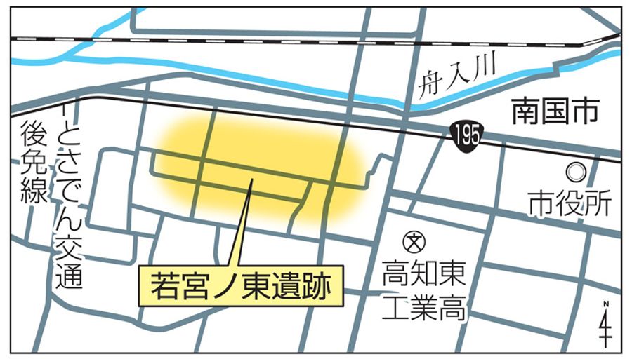 南国市篠原にある弥生時代から江戸時代にかけての複合遺跡。南国市役所の西方約600メートルに位置する。土地区画整理事業の工事に伴い、2017年度から22年度まで同市教育委員会が発掘調査。県立埋蔵文化財センターは16年度から、都市計画道路の建設に伴う発掘調査を続けている。弥生時代後期末から古墳時代初めの竪穴建物跡が数多く見つかり、大規模な集落があったとみられる。飛鳥時代の役所があった可能性を示す掘立柱建物跡や、奈良―平安時代の租税の穀物を保管した正倉跡が見つかっている。