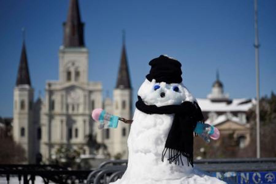22日、記録的積雪となったニューオーリンズ市街(ロイター=共同)