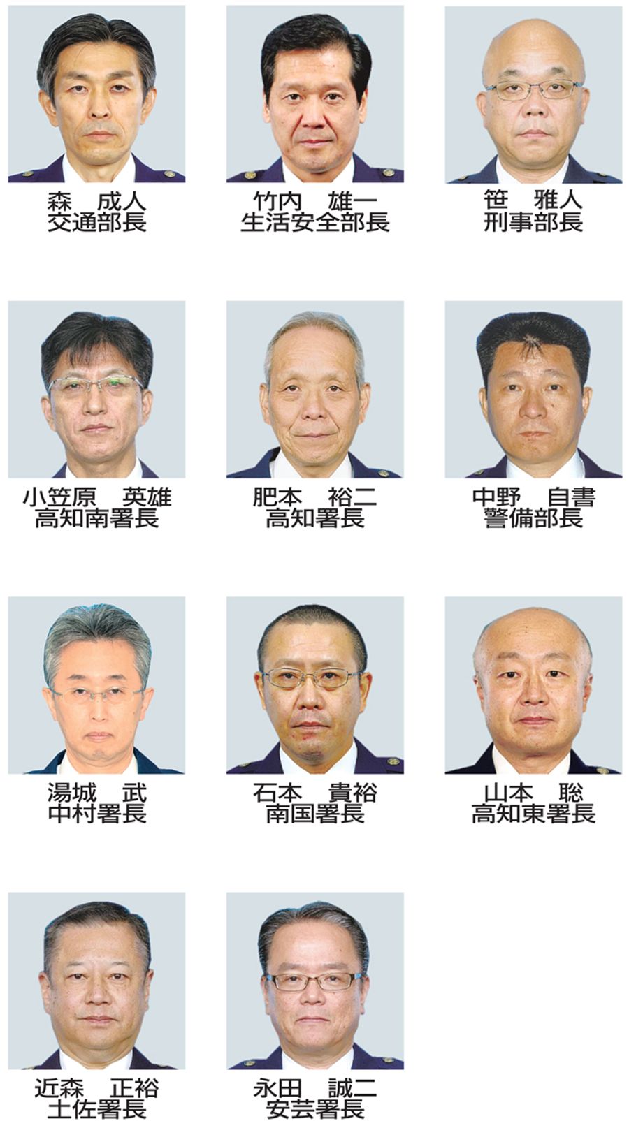 刑事部長に笹氏 高知署長は肥本氏 県警1次異動 人身安全・少年課新設