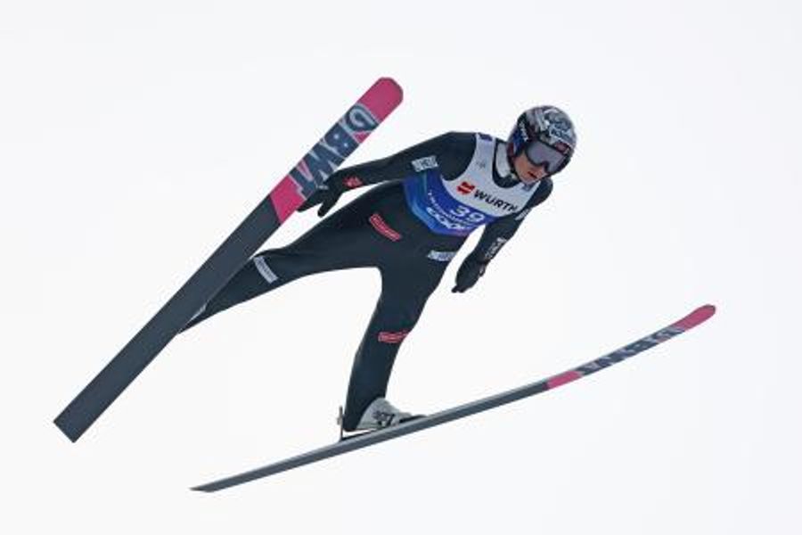 世界ノルディックのジャンプ男子ラージヒルで、スーツの規定違反により失格となったノルウェーのマリウス・リンビク=8日、トロンヘイム(共同)