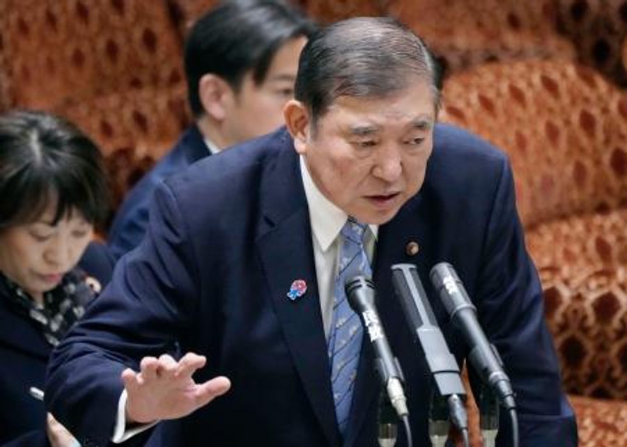 参院予算委の集中審議で答弁する石破首相=17日午前
