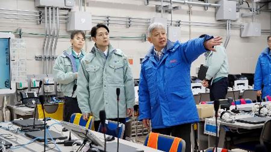 北海道電力泊原発を視察する北海道の鈴木直道知事(中央)=23日(北海道電力提供)