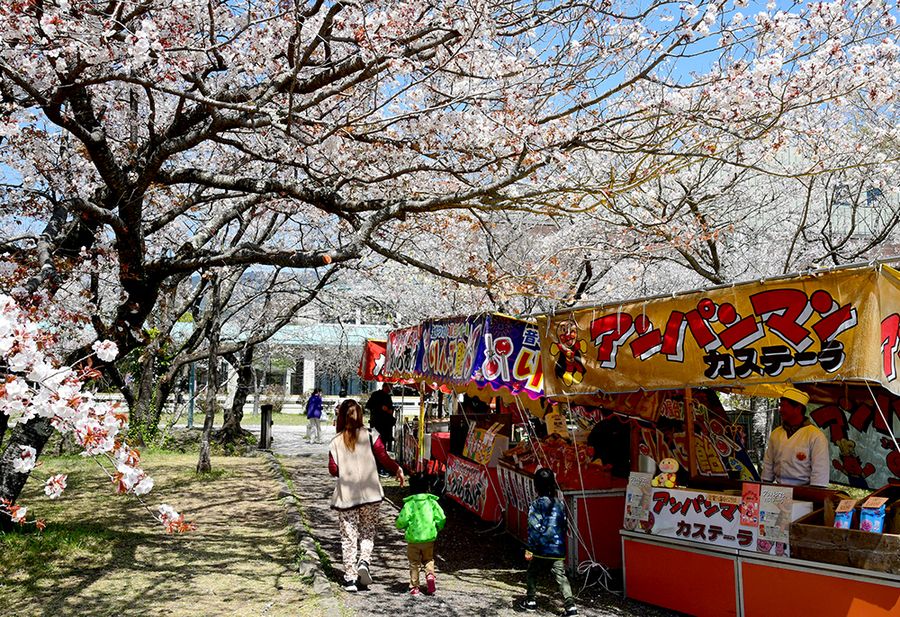 香美市土佐山田町の鏡野公園は、平日でもたくさんの花見客がお弁当を広げて楽しんでいました。散り始めていましたが、まだつぼみもそこここに。天気に恵まれれば、そうしばらくは楽しめそうですね。