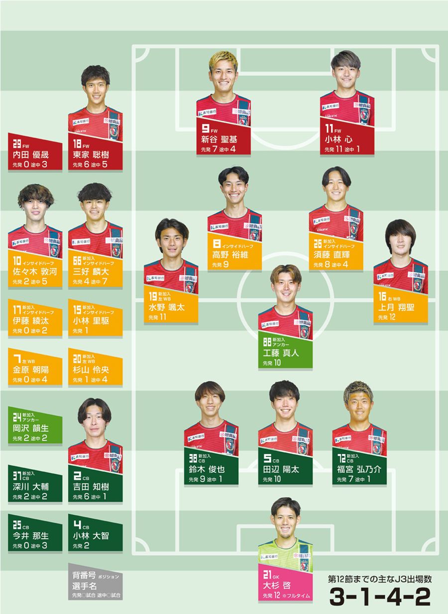 高知県勢として初めてJ3に参戦し、ここまで12試合を戦った高知ユナイテッド。現在は3勝3分け6敗の勝ち点12で16位(20チーム中)につけている。中盤戦に入る前に一度、これまでの戦いも踏まえて、今季の戦力を分析する。