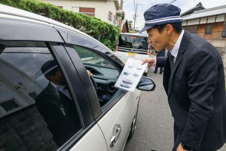 同日午後2時半から約1時間、車やバイクを止めて捜査員らが顔写真入りのチラシを配布。府警が新たに公開した不審車と同型車の画像を示しながら「早く帰してあげたい。情報提供をお願いします」と呼びかけた。