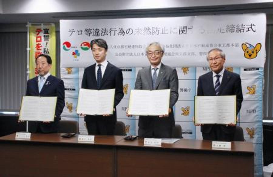 単独でテロを計画し実行する「ローンオフェンダー」などによる被害を防ぐため、警視庁は21日、東京都内の不動産業界3団体と協定を締結した。物件の管理などを通じ、異常音や異臭がするといった不審な情報があれば、速やかに警視庁に通報してもらう。
