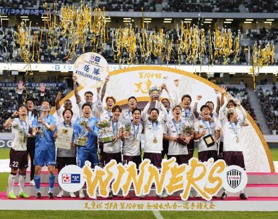昨年のサッカー天皇杯で優勝し、大喜びの神戸の選手たち=2024年11月、国立競技場