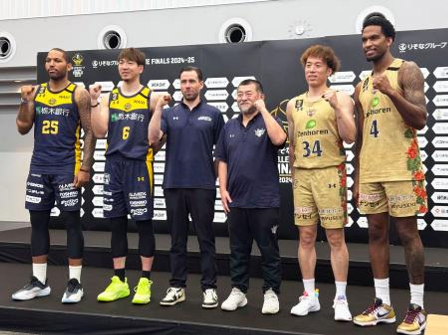 24日からのバスケットボールBリーグのプレーオフ、チャンピオンシップ(CS)決勝(2戦先勝方式)に臨む琉球(西地区1位)と宇都宮(東地区1位)の選手らが23日、会場の横浜アリーナで記者会見し、2016年のBリーグ発足後、初となる全日本選手権との2冠を目指す琉球の小野寺は「力みはない。出だしからチャレンジャー精神を持って戦いたい」と抱負を述べた。