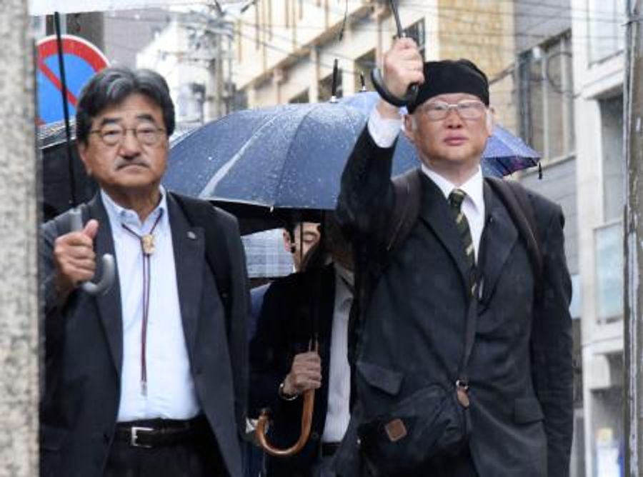 告発状提出のため神戸地検に向かう神戸学院大の上脇博之教授(右)ら=10日午前、神戸市中央区