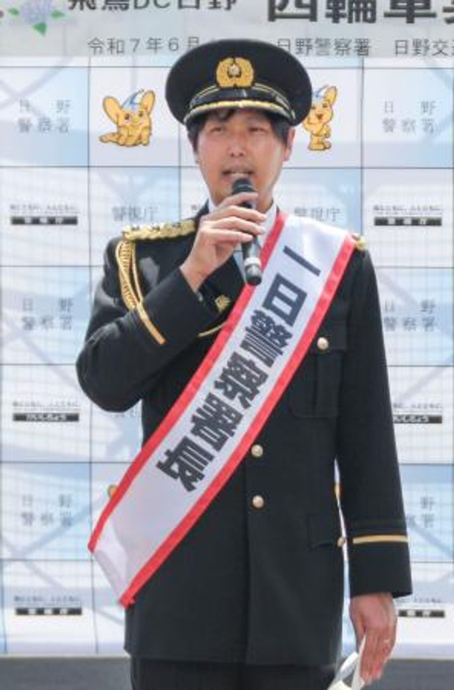 ドライバーの交通安全意識の向上を図るため、警視庁日野署は19日、東京都日野市の自動車教習所で啓発イベントを開催し、地元出身のプロレーサー加賀美綾佑さん(35)を一日署長に任命した。加賀美さんは「安全のためには、レースでもルールを守るのが一番大事。視野を広く持ってほしい」と参加した地域住民らを指導した。