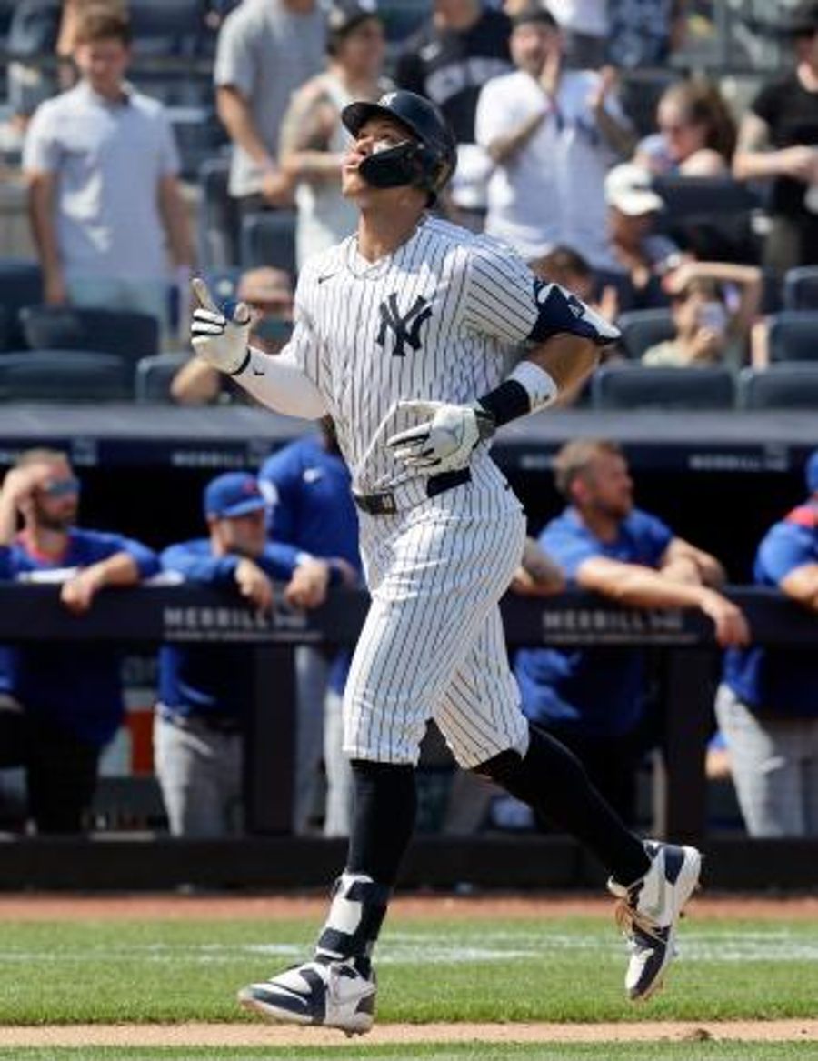 カブス戦の九回に今季35号を放ち、大リーグ史上最速の通算350本塁打に到達したヤンキースのジャッジ=12日(ゲッティ=共同)