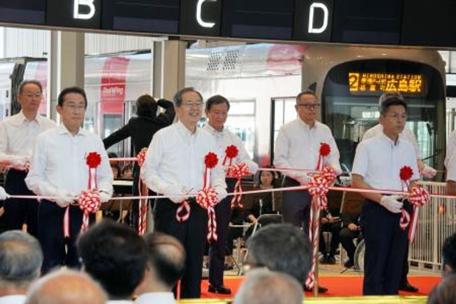 2日には新線の開業式があり、岸田文雄前首相も出席。広島電鉄の仮井康裕社長らとテープカットした。仮井氏は「広島の公共交通を大きく進化させると考える」とあいさつした。