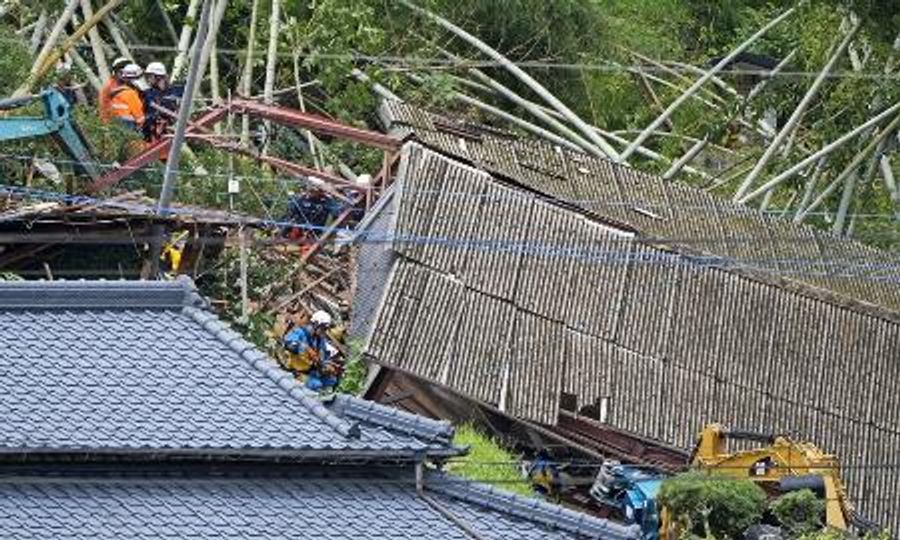 住宅倒壊現場=9日、鹿児島県姶良市