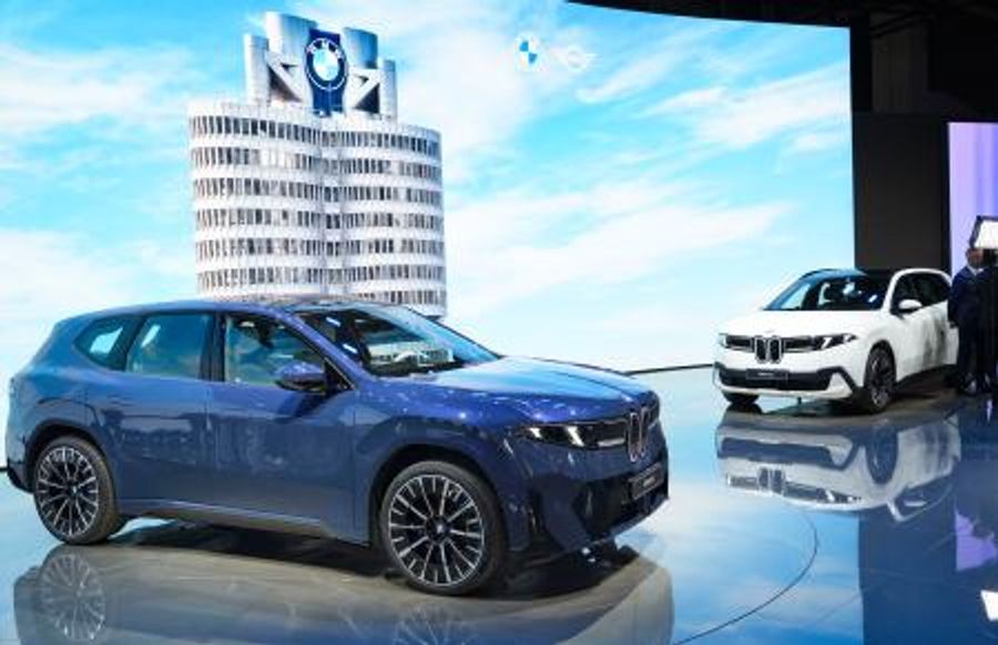 ドイツ・ミュンヘンの「IAAモビリティ」で報道陣に披露されたBMWの新型EV「iX3」=8日(共同)