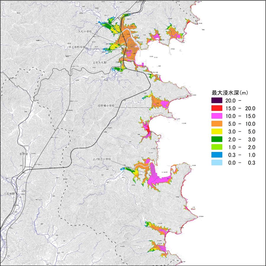【高知県版津波浸水予測】中土佐町 押岡に15~20メートルの津波