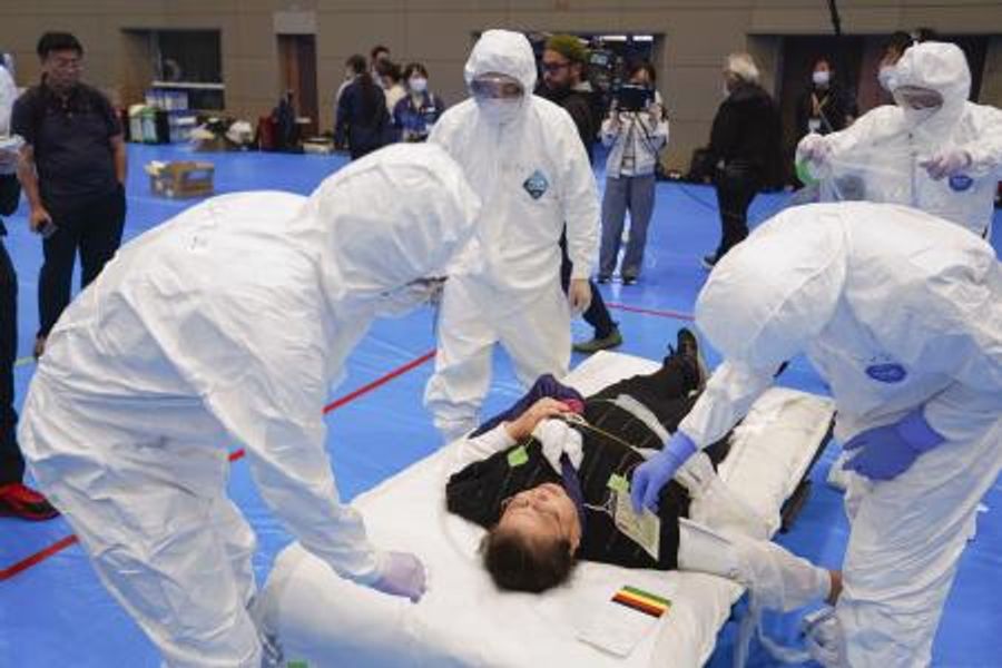 各地の原発周辺などにある原子力災害拠点病院は、災害発生時に専門チームを組み、現地に出動する場合がある。今回は専門知識を持つ4県7病院の医師や看護師ら約20人が参加した。