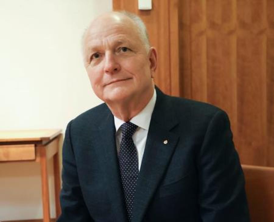 共同通信のインタビューに応じる、ノーベル生理学・医学賞選考委員長を務めるオッレ・シェンペさん(共同)