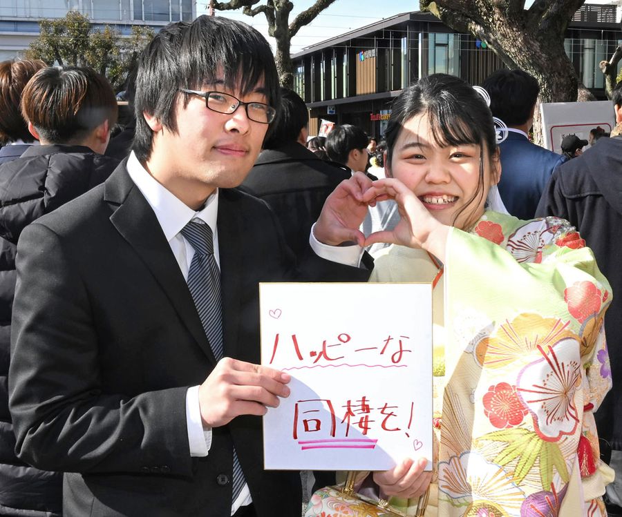久保田アイスで働く坂本紗菜(すずな)さんと、技研製作所に就職が決まっている高知高専生の田部良佑さんは交際5年のカップル。結婚を約束しており、9月から一緒に住むという。「入居日はタコパをするって約束してるんです。キャハ♡」と坂本さん。田部さんは「か、かわいい。幸せな家庭を築くために一生懸命働きます」。笑顔で見つめ合っていた。