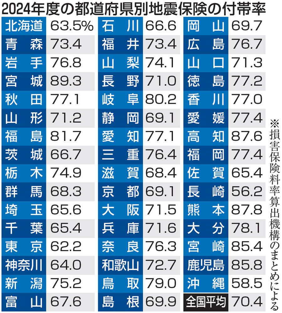 地震保険加入率に地域差 火災とセット 高知全国3位