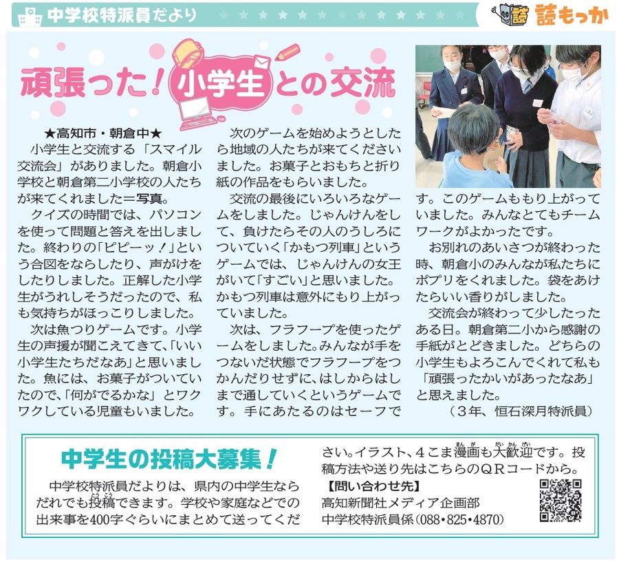 【中学校特派員だより】1月28日付