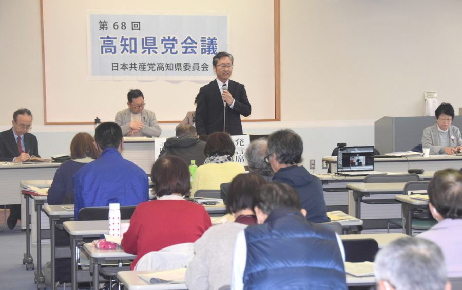 共産党高知県委員会(春名直章委員長)は22日、高知市内で県党会議を開き=写真、向こう1年間の活動計画を採択した。浜田省司知事の政治姿勢を「現場の実態や声を無視した…