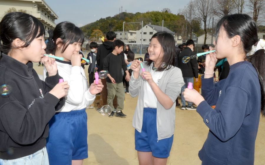 最後に楽しい思い出を! 高知市・大津小でシャボン玉飛ばし 6年生ら参加